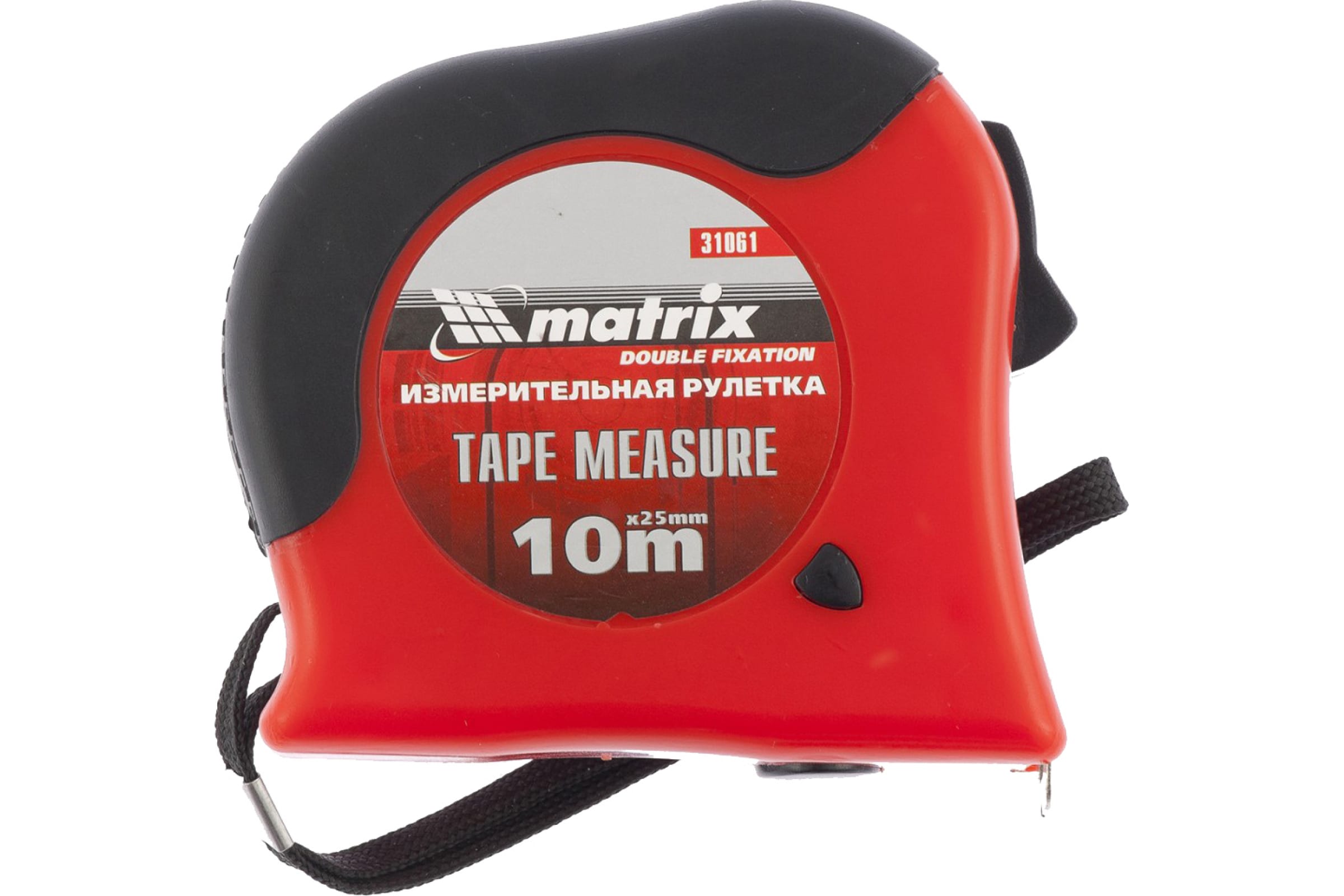 Рулетка 10 м х 25 мм MATRIX 31061 имеет ленту длиной 10 метров, что позволяет её использовать для измерения расстояний при строительстве. В устройстве находится два механизма, с помощью которых осуществляется плавная фиксация ленты.
