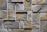 Массивный прямоугольный декоративный камень разных размеров с грубо обработанной поверхностью. "Средневековый замок" придаст зданию строгий, монументальный вид. Оригинальный вариант для отделки фасада.
