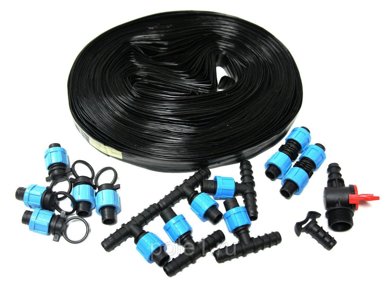 Приняв решение разместить такую систему полива, необходимо помнить, что она включает в себя капельную ленту, шланги, различные соединительные муфты, уголки и прочие материалы для монтажа.