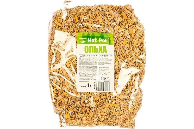Щепа ольхи HotPot изготавливается только из натуральной древесины. Проста в использовании. Длительный срок хранения достигается за счёт оптимальной влажности щепы. Рекомендуется для копчения кролика, рыбы, морепродуктов, сыров, дичи.